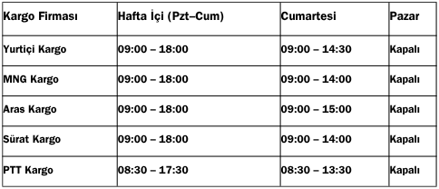 - Büyük şehirlerde bazı kargo şubeleri yoğunluğa bağlı olarak geç kapanabilir.